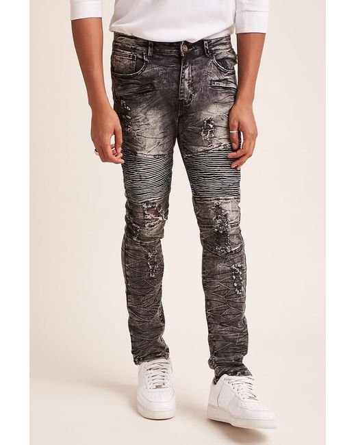 Forever 21 Denim Waimea Crinkle Moto Jeans In Black For Men Lyst